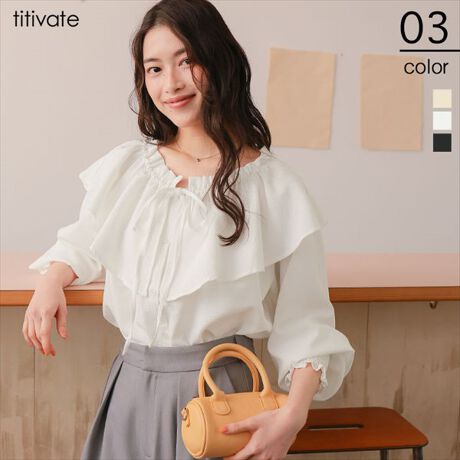 ・春先に大活躍するブラウス・ストライプ見えするサッカー系素材が可愛い・襟がゴム仕様なのでマルチウェイで着用して頂けます・シンプルなボトムスでも着映えさせてくれるアイテムです[型番:AHXN2330]