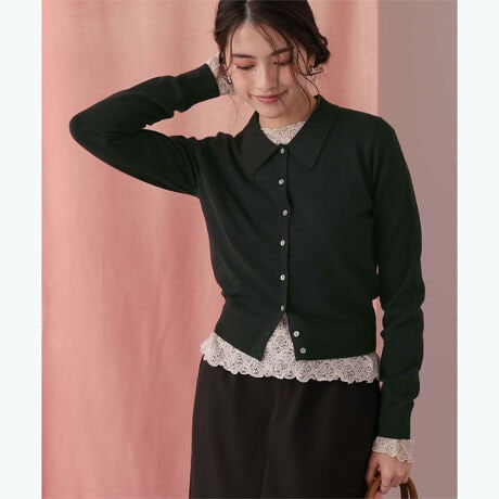 ・クラシカルなポロ襟デザインで、トレンド感と上品さを両立したニットカーディガン・トップス