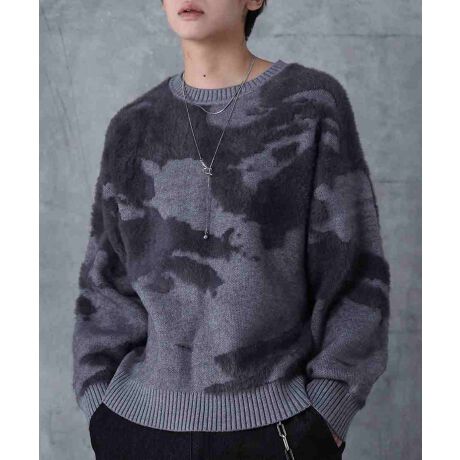 Confirm アブストラクト柄 モヘアライク クルーニット プルオーバー