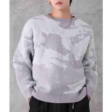 Confirm アブストラクト柄 モヘアライク クルーニット プルオーバー