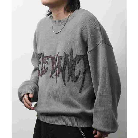 エッジの効いたロゴが視線を集める。ストリート・グランジテイストの主役級ニット。