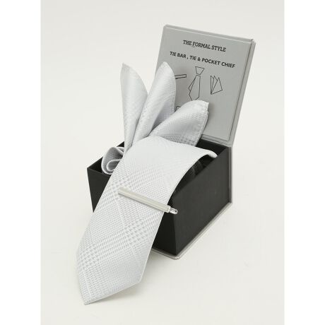 フォーマルネクタイ&チーフ&タイバー BOXセット グレンチェック