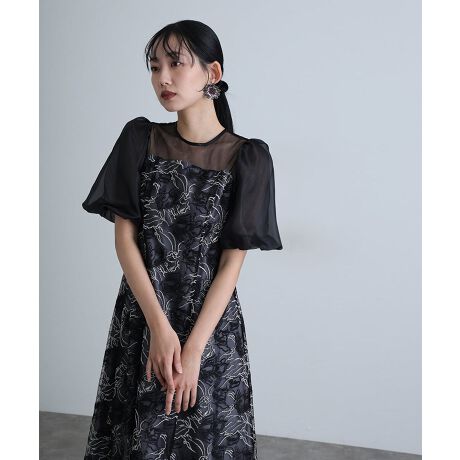 デコルテ部分のシアー切り替えが抜け感をプラスし、顔まわりをすっきりと見せてくれます。