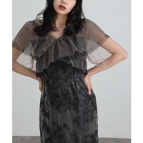 ふんわりチュールケープが肩まわりを包み込い透明感をプラスします。