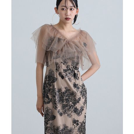 ふんわりチュールケープが肩まわりを包み込い透明感をプラスします。