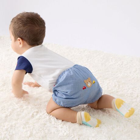 ウエストや足元部分は、赤ちゃんの活発な動きに考慮したゴム仕様になっています。