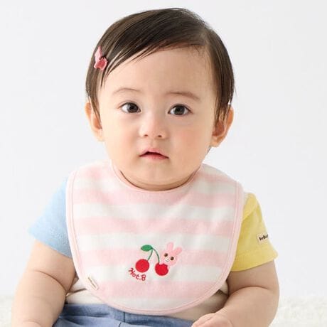 ミキハウス ホットビスケッツのボーダー柄のスタイ。