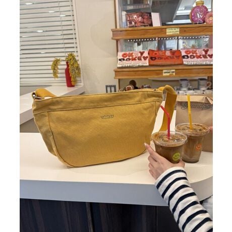 厚みのあるキャンバス素材を使用した、ラウンドフォルムのショルダーバッグ。