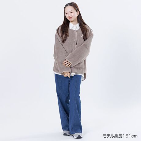 ノーカラーのボアブルゾン。◆ポイント・左胸にMQロゴ刺・左右にパッチポケット・中綿キルトの裏地付き・BACKの丈が長めでお尻までカバー・長袖◆コーディネートカジュアル過ぎず、きれいめスタイルにも。[型番:225-554813]