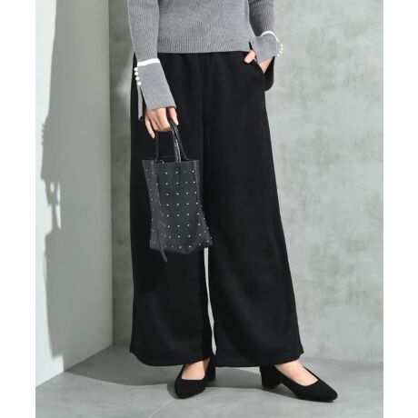 肌触りの良いフェイクスエード素材で仕立てたすっきりシルエットのイージーパンツ。少し高めの位置のウエストがスタイルアップのポイントです。ストレッチ性の高いカット素材を使用しているので履き心地はお墨付き!ウエストにゴムドロストを使用し、嬉しいポケット付きで実用性もバッチリ◎