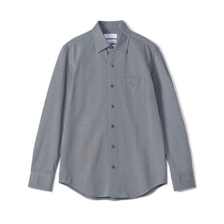 クラシックなドレスシャツのバランスを踏襲しつつ、ジャージならではの自然な伸縮で身体にすっきりと沿うシルエット。