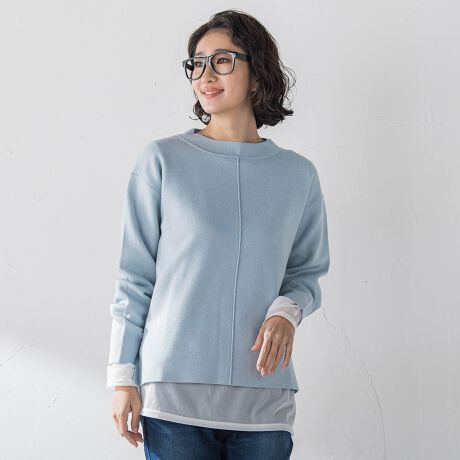 ミラノリブならではの上品な編み地に、ほんのり“スウェットライク”なリラックス感を加えたクルーネックニット。