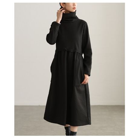 裏起毛が冬の冷えを包み込むワンピースは、ハイネックで首までしっかり暖かいのが魅力。高めの切替位置から広がるフレアシルエットが自然に脚長効果を生み、大人の冬スタイルを品よく仕上げてくれます☆