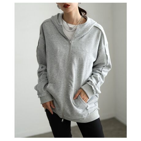 【アウター】 レディース パーカー グレー ブラック カジュアル きれいめ ダブルジップ 春 秋 冬