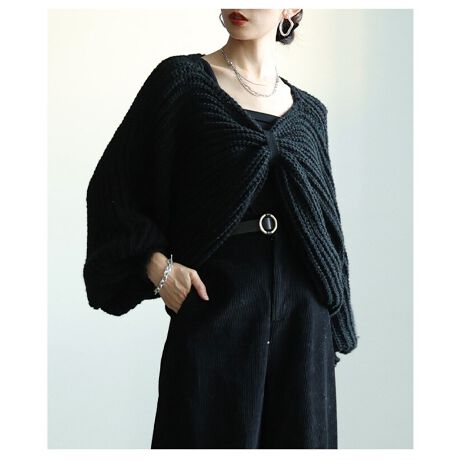 ざっくり編みのローゲージニットボレロは、まるでリボンをまとったような愛らしいデザインに思わずときめく一枚。ドルマン風のふんわり袖が二の腕を優しくカバーし、いつものコーデにプラスするだけで華やぎが生まれます!