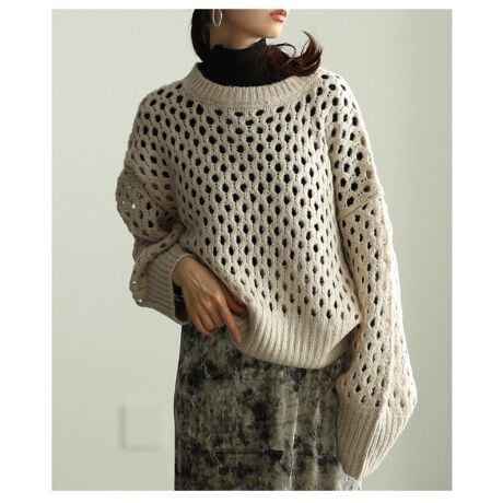 ざっくりメッシュデザインが今っぽいニットトップス。メッシュの隙間からインナーを覗かせるだけでこなれ感が生まれ、着こなしの幅がぐっと広がります。4色展開で気分に合わせてカラーが選べるのも嬉しいポイント☆