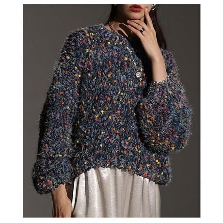 【トップス】 ニット セーター カラフル ネップ シャギー MIXニット ボリューム袖 長袖 秋 冬