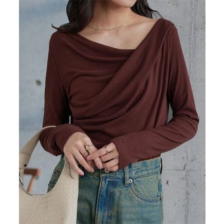 洗練された大人の表情ひきたてるドレープデザイントップス。
