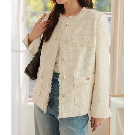 特別な日には華やかに、普段の装いには上品さをプラスしてくれる、ワードローブに一枚あると心強いツイードジャケットです。