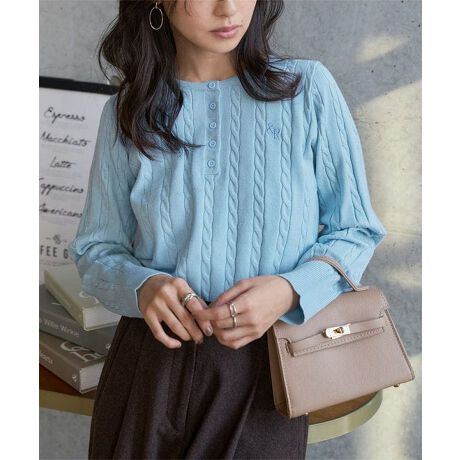 立体感のあるケーブル編みと、ほどよい抜け感を生むヘンリーネックが魅力のケーブルニット。