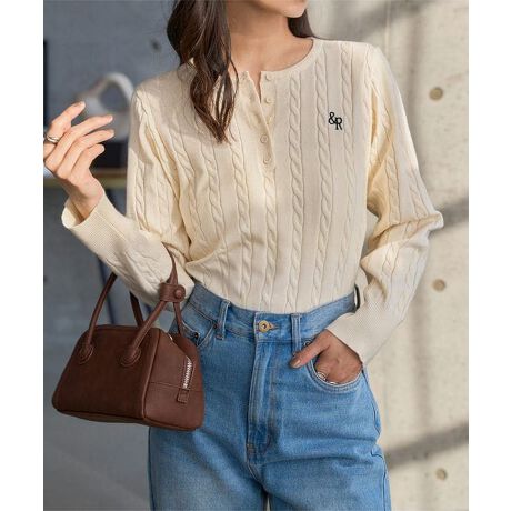 立体感のあるケーブル編みと、ほどよい抜け感を生むヘンリーネックが魅力のケーブルニット。