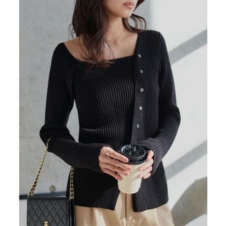 女性らしさあふれるデザインリブニット。