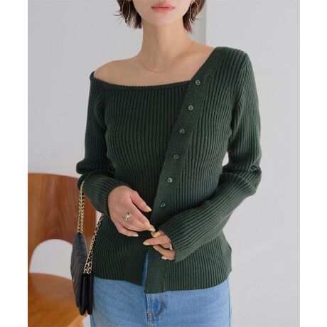 ワンショルダーのようなシルエットとフロントボタンのデザイン性で一枚でコーデが華やかに着映えます◎