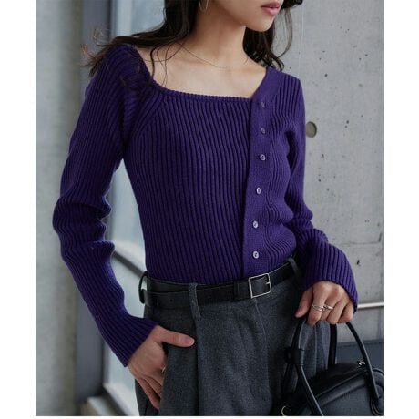 ワンショルダーのようなシルエットとフロントボタンのデザイン性で一枚でコーデが華やかに着映えます◎