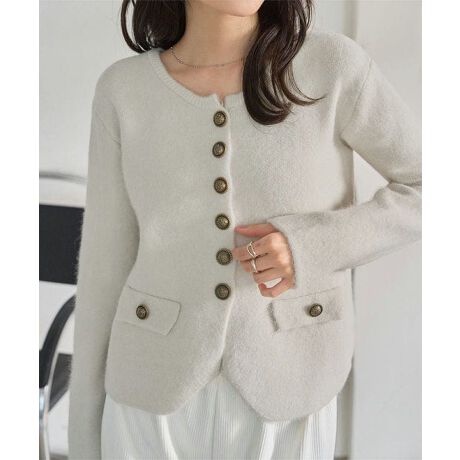 もっちりと柔らかな風合いが心地よい、上品でクラシカルな雰囲気のニットカーディガン。