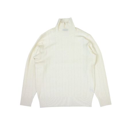 首元をすっきり魅せるタートルネック仕様で上品な印象に。ざっくりした縦リブ編みが"立体感と洗練さ"の両方を演出し、シンプルながら存在感のある仕上がり。軽量でありながら型崩れしにくく、耐久性の高さもポイント。