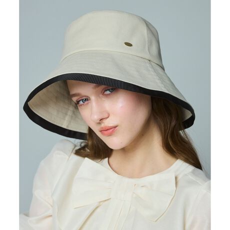 つばの縁にバイカラーのグログランリボンをあしらったトッカ定番のバケットハットが撥水素材で新たに登場。