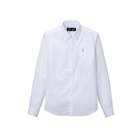 定番レギュラーカラーの白シャツは、綿100%なので着心地抜群。シワになりにくいモイストキュア加工でお手入れ簡単です。袖口のボタンは2段階の調節可能で、フィット感を調節できます。襟元はメンズシャツと同様の立ち襟仕様。首のラインに添って、襟元がすっきり見えるのが特徴で、ネクタイやリボンも美しく決まります。ボタンはオリジナル仕様、EASTBOYの刻印入り。 左胸に女神刺繍入り。<モイストキュア加工>特殊な形態安定加工をほどこすことにより、綿の風合いや光沢をそのままに、シワになりにくい特性があります。