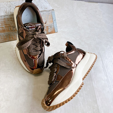 異素材の組み合わせが織りなす、洗練された存在感が魅力の厚底スニーカー。