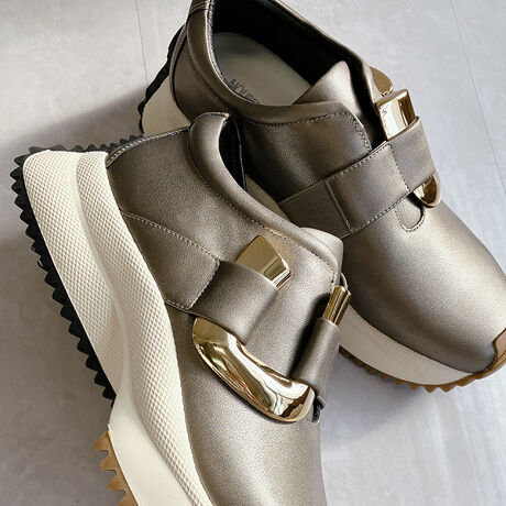 シンプルなフォルムに艶やかなアクセントを効かせることで、カジュアルでありながらも大人の品格を感じさせる一足。