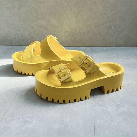 存在感のある厚底デザインが魅力の、ダブルベルトサンダル。
