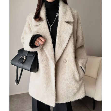 上品見えのフェイクウールシャギー素材使用
