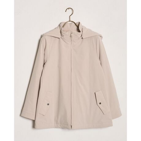 フードを外してスタンドカラー使いできれいめな着こなしもおすすめの2WAYデザインです。