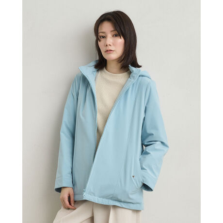 フードを外してスタンドカラー使いできれいめな着こなしもおすすめの2WAYデザインです。
