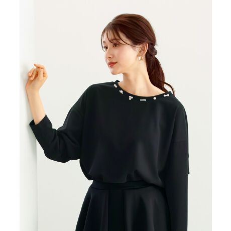 ランダムパール ブラウス ドライタッチ フライス 手洗い可 ドロップショルダー 後ろ下がり ヒップカバー カジュアル きれいめ レディース 通勤対応 オフィス セレモニー デイリー
