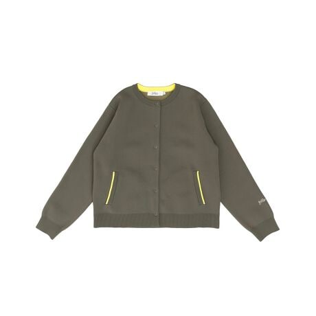 リングドット釦でブルゾンデザインに仕上げているので、アウターカーデとしても長く着用できるアイテムです。