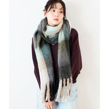 ふんわり軽くて暖かい、柔らかく包み込まれるような質感のチェック柄ストール。