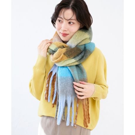 ふんわり軽くて暖かい、柔らかく包み込まれるような質感のチェック柄ストール。