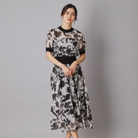 【モノトーンで大人っぽく。シックな大判ボタニカル柄のエレガンスなワンピースが登場!】