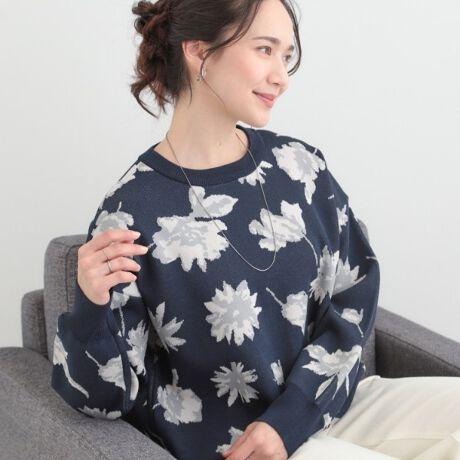 華やかなフラワー柄が目を惹くスウェットライクなスポンディッシュニット。