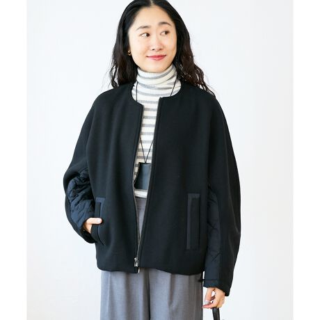 ふんわりとしたウール混の生地に、軽やかなダウンキルティングを合わせた異素材アウター。