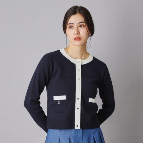 毎シーズン人気のウォッシャブルコットンカシミヤ混カーディガンが、今季は「配色(バイカラー)デザイン」で新登場。