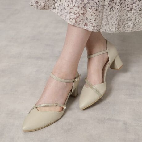 華奢なストラップが足元を美しく見せてくれるポインテッドトゥパンプス。