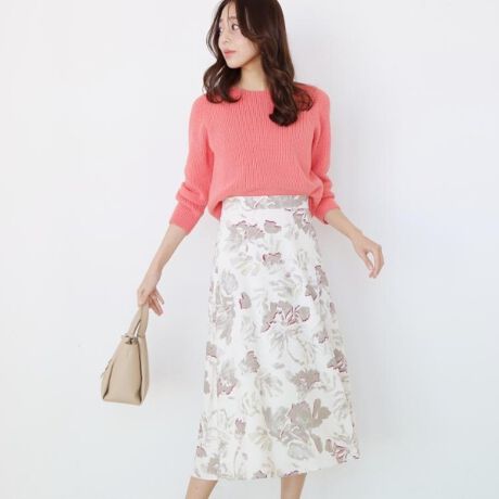 フラワープリントのフレアスカート。