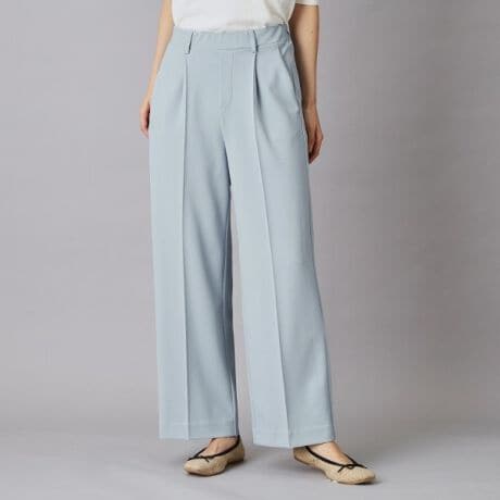 美しいセンタープレスとしっかりした肉感のジョーゼットでスラックスのようなきちんと感はキープしつつ、素材には扱いやすさを追求したイージーケアパンツ。