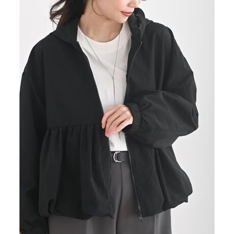 バルーンシルエットが女性らしいフードジャケット。
